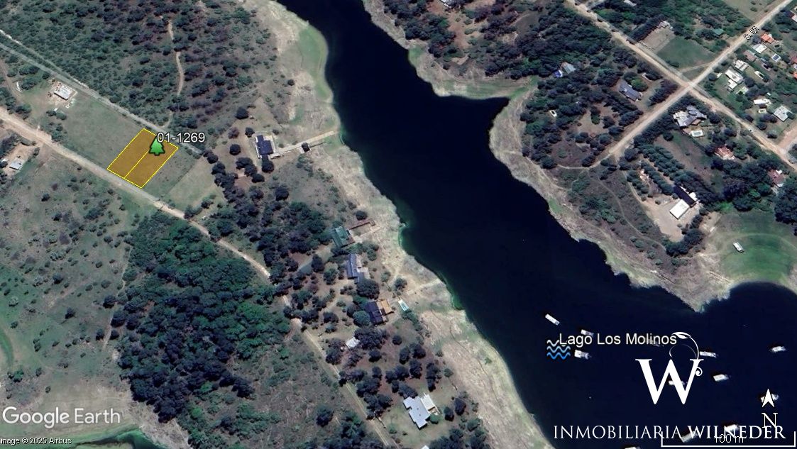 Se ubica a pocos metros del lago Los Molinos. Lote plano con vista a las sierras chicas.