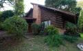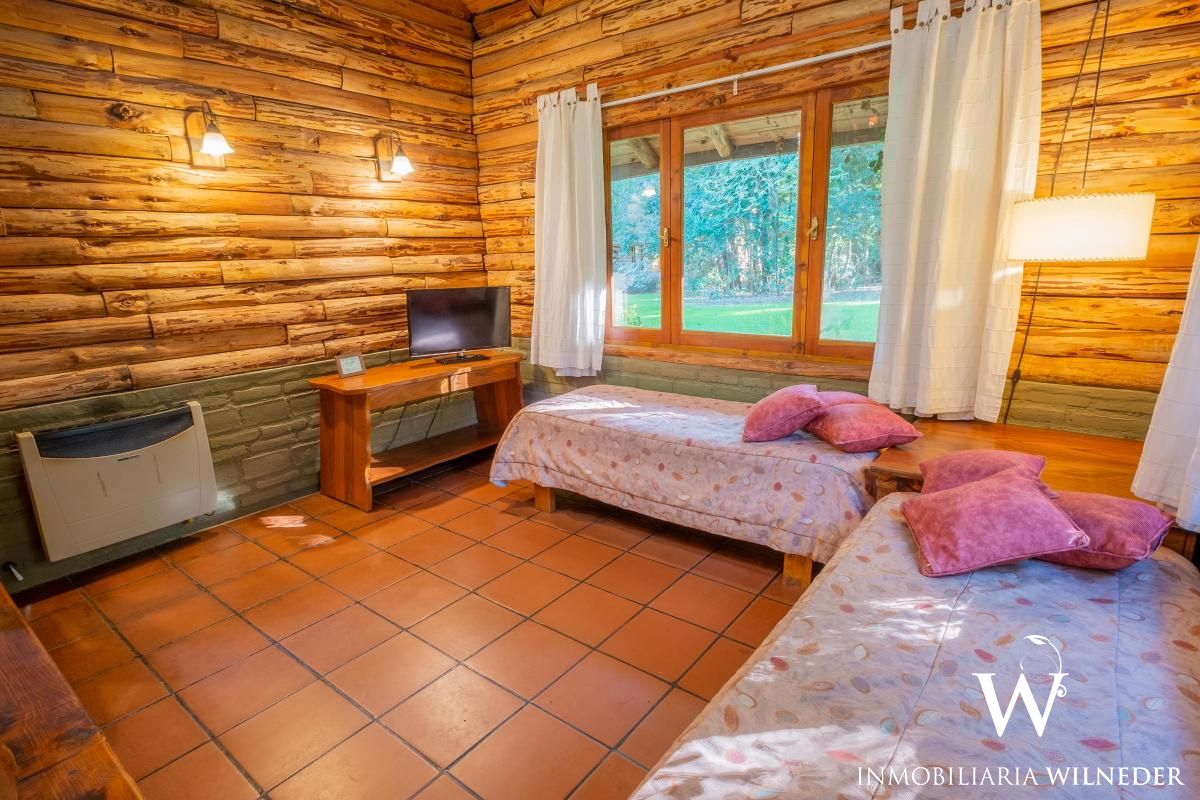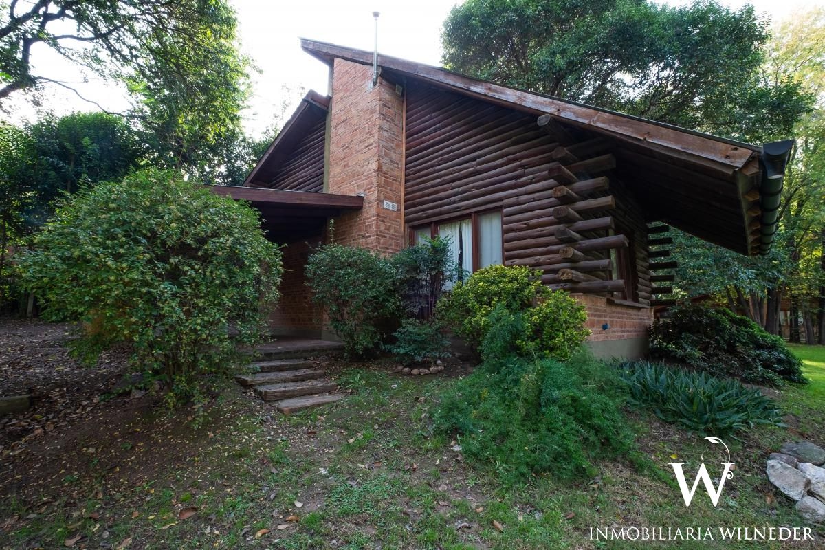 Construcción de ladrillo y troncos que se distribuye en dos plantas.