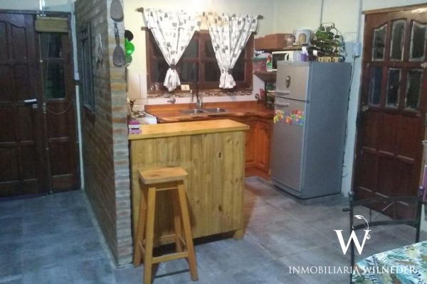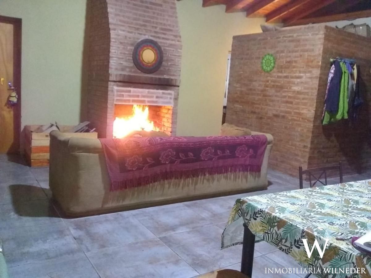 El inmueble esta construido con ladrillo (construcción tradicional)  y techo de madera con muy buen aislamiento y cubierta de  chapa. Cuenta con 2 dormitorios, 1 baño con bañera, amplio ambiente de cocina, living con hogar central y  comedor. En el exterior estacionamiento cubierto para un vehículo y asador.