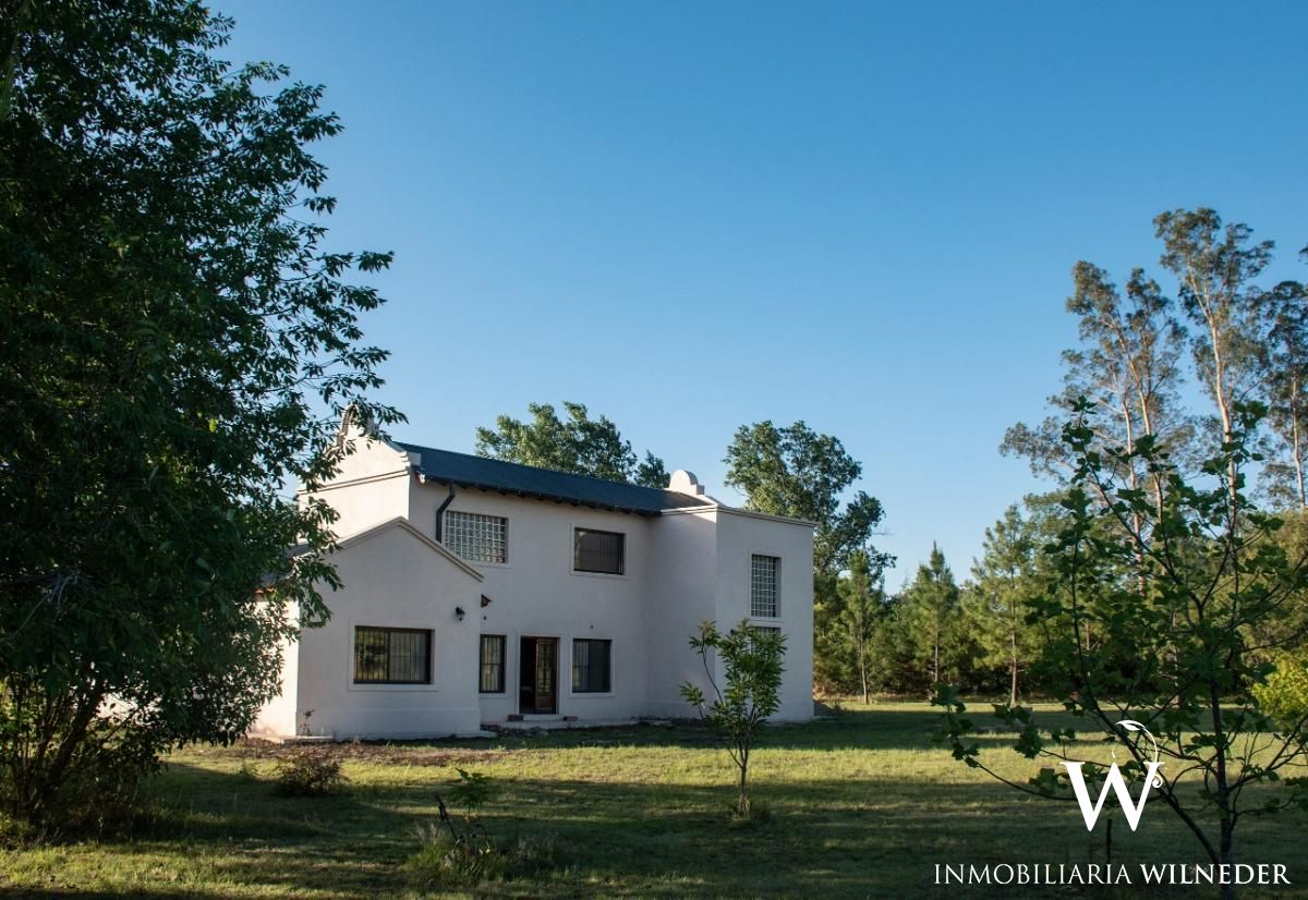 La casa principal tiene 241m2 terminada en un 85% ( faltan los pisos, parte de la pintura, y equipamiento de baño y cocina, ideal para hacer las terminaciones a gusto). Exterior totalmente terminado. Tiene dos habitaciones (1 con vestidor), dos baños, salón/estar/cocina de más de 60 m2, lavadero/utility room terminado, sala de estar en primer piso balconeando a la planta baja de 40 m2. 2 tanques de agua en sala bajo techo, guarda garrafas cerrado. Instalación completa y lista de agua, gas y electricidad con 5 sectores y térmicas. Galería con vista a Sierras totalmente techada.
