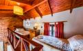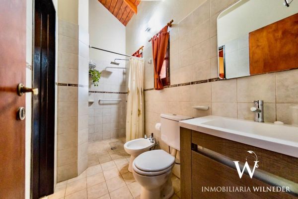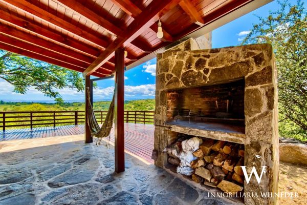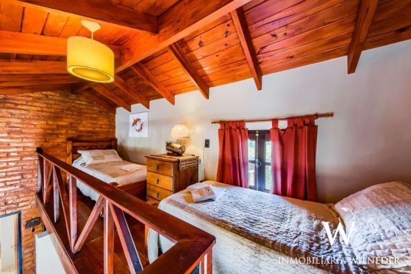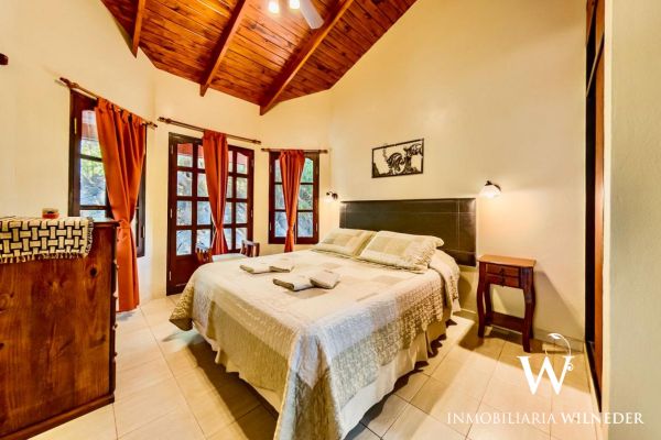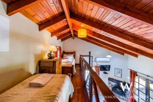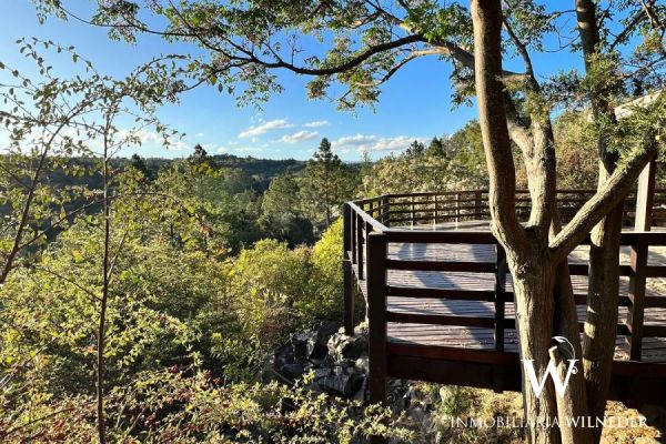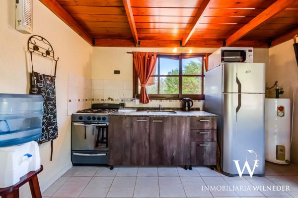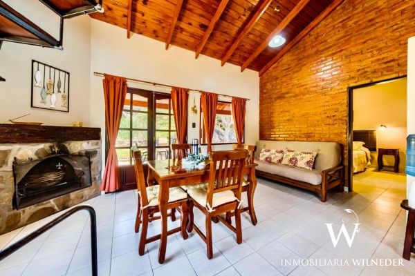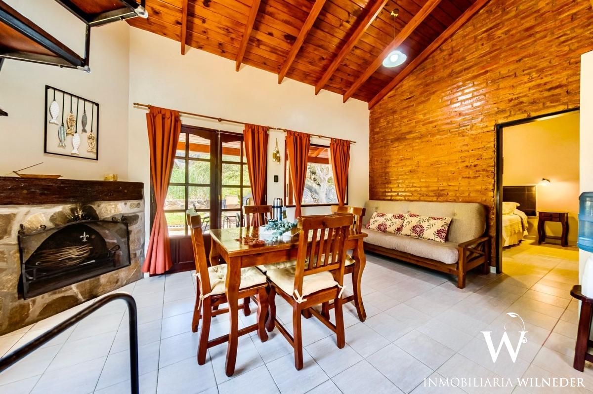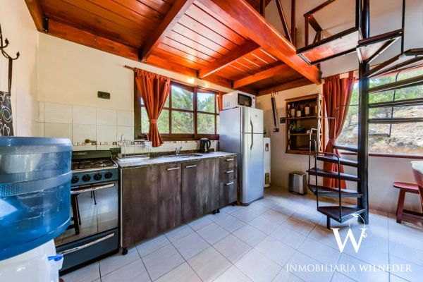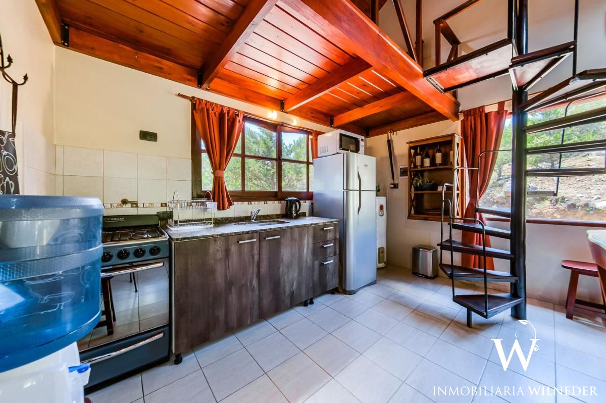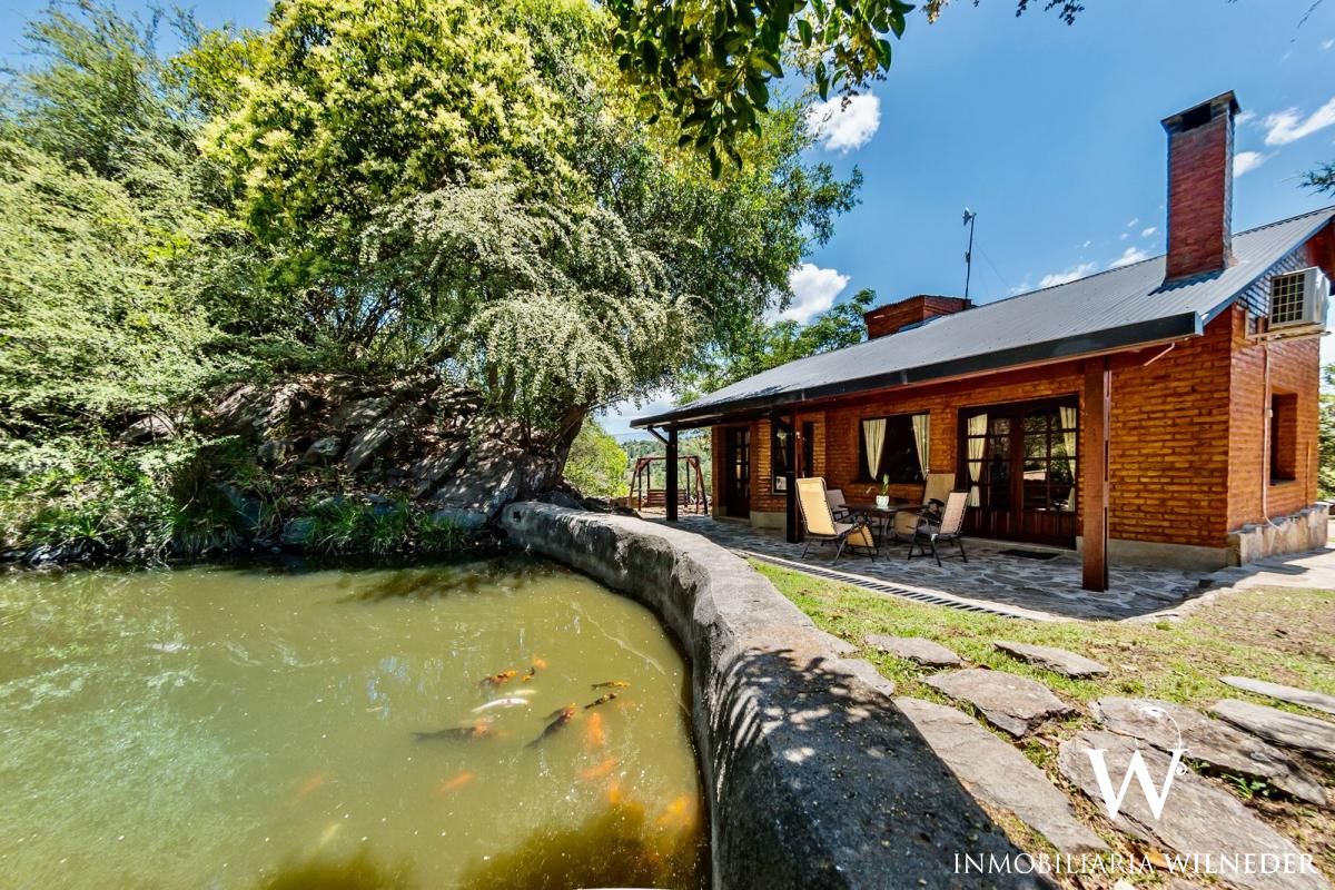 Vertiente y arroyo a 150m de la casa . Formada entre piedras de granito, sus aguas desembocan en una pequeña laguna con peces de colores que llaman la atención de los más pequeños de la familia. El contacto con el agua le aporta un plus a la experiencia de habitar esta cabaña, que se completa con la postal que ofrece su balcón de madera volado.