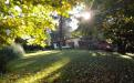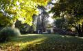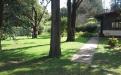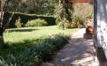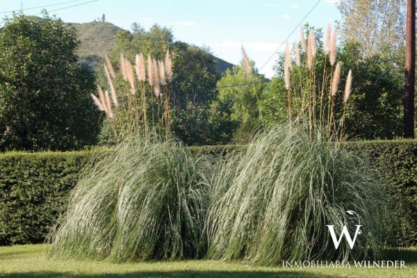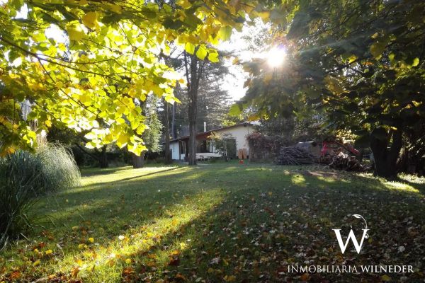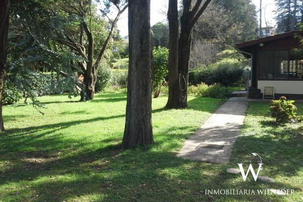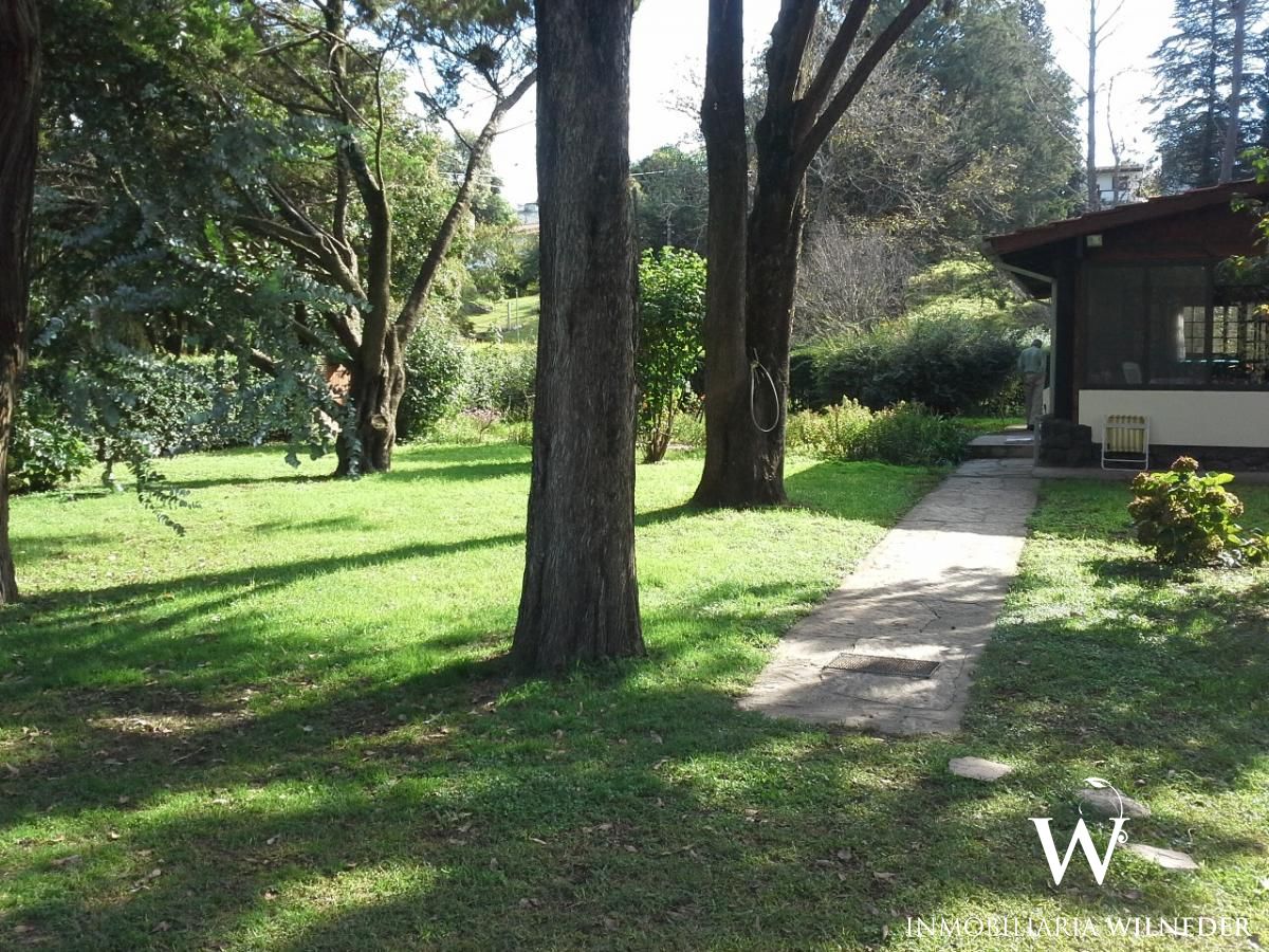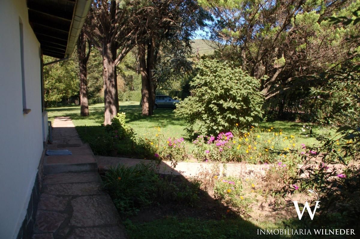 Gran terreno completamente parquizado con cerco perimetral y cerco verde, frutales, flores, senderos .